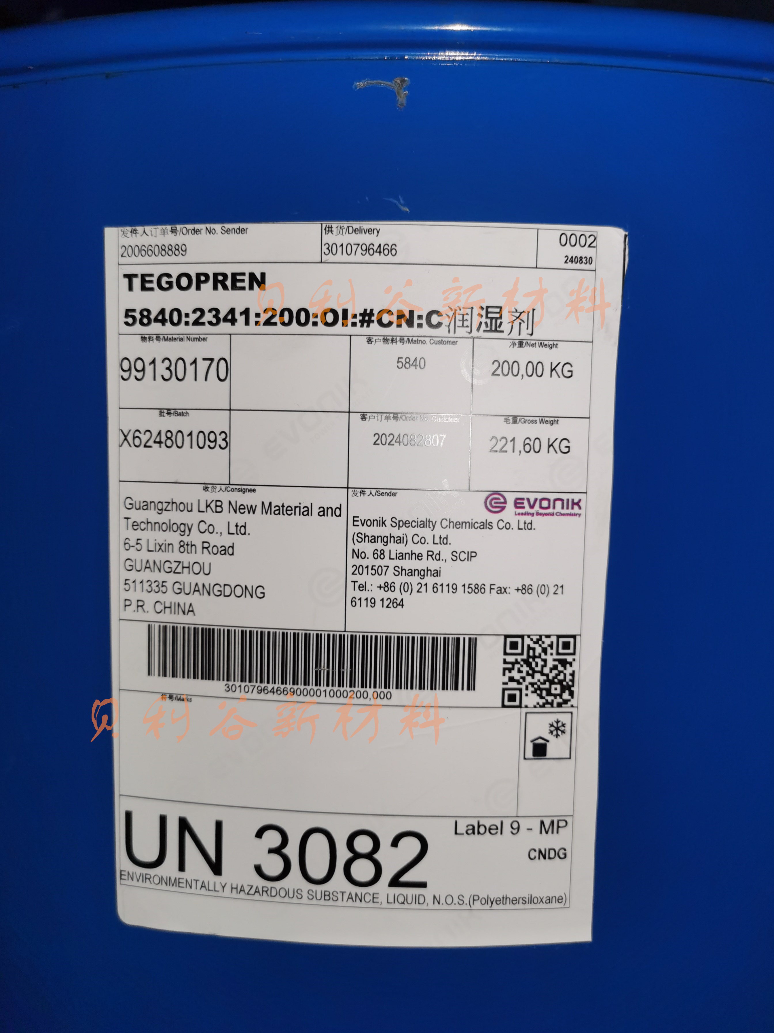 5840是一种低泡改性有机硅表面活性剂混合物,超强的润湿性能,它可有效改善基材润湿,防止缩孔,提升匀化,促进流平