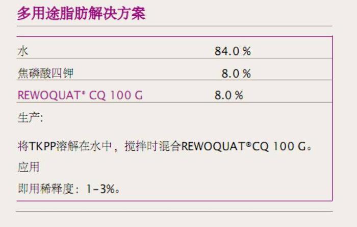 REWOQUAT® CQ 100 G --原装进口的专为重型污垢清洁而研发的清洗剂原料,与REWOQUAT® CQ 100 G 功效最接近