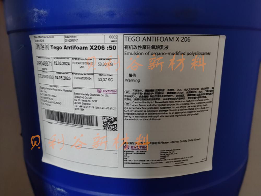 TEGO®Antifoam X 206易于在水中分散,因此可在交付时使用。